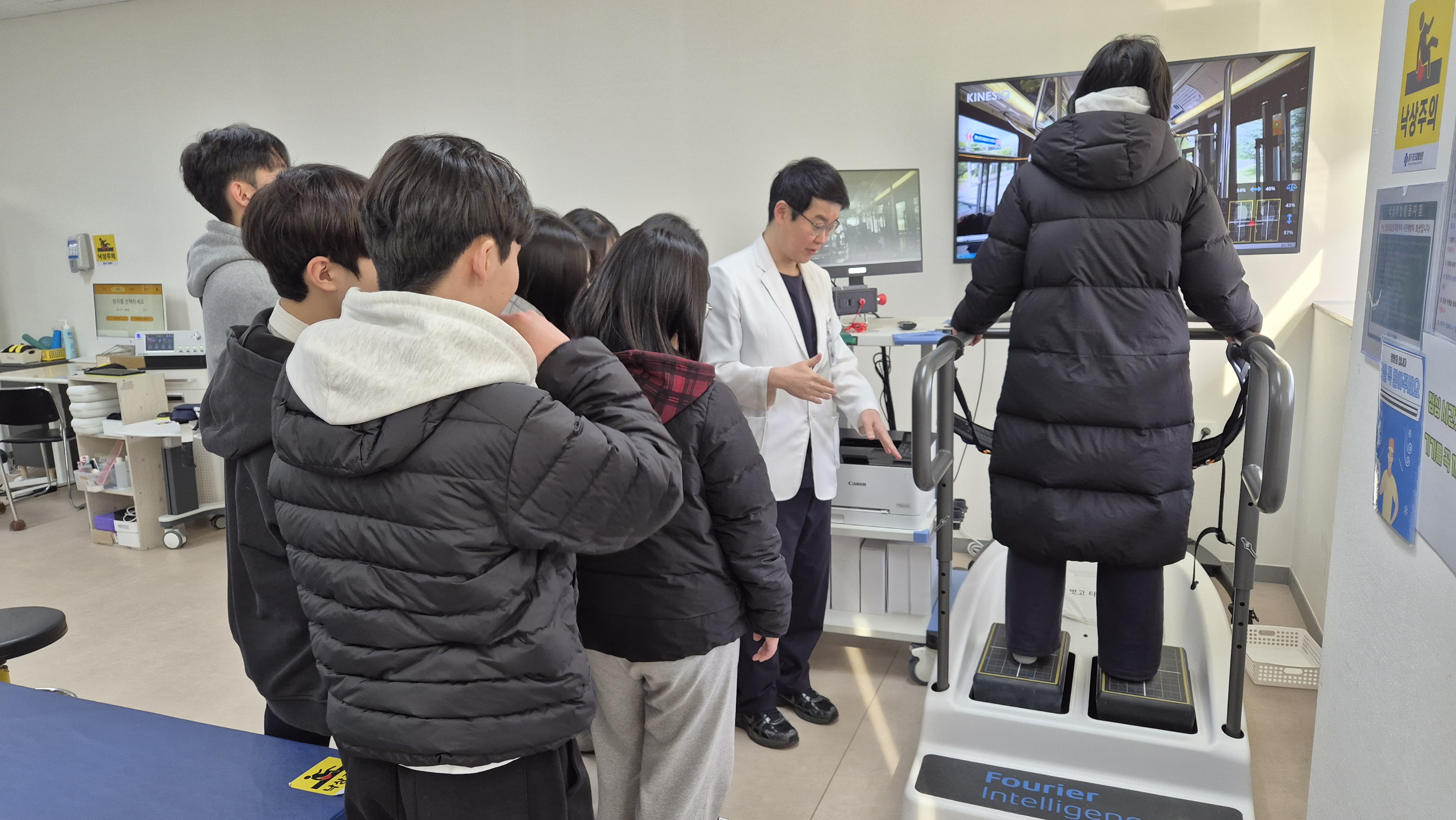 ○ 견학에 참여한 학생들은 병원 내 재활치료 공간을 둘러보며 재활의학 분야의 역할과 기능을 살펴보고, 재활의료 관련 직무와 진학 경로에 대한 설명을 들었다. 이를 통해 교과서나 매체를 통해 접하던 의료 현장을 직접 체험하며 진로 탐색의 기회를 넓혔다.