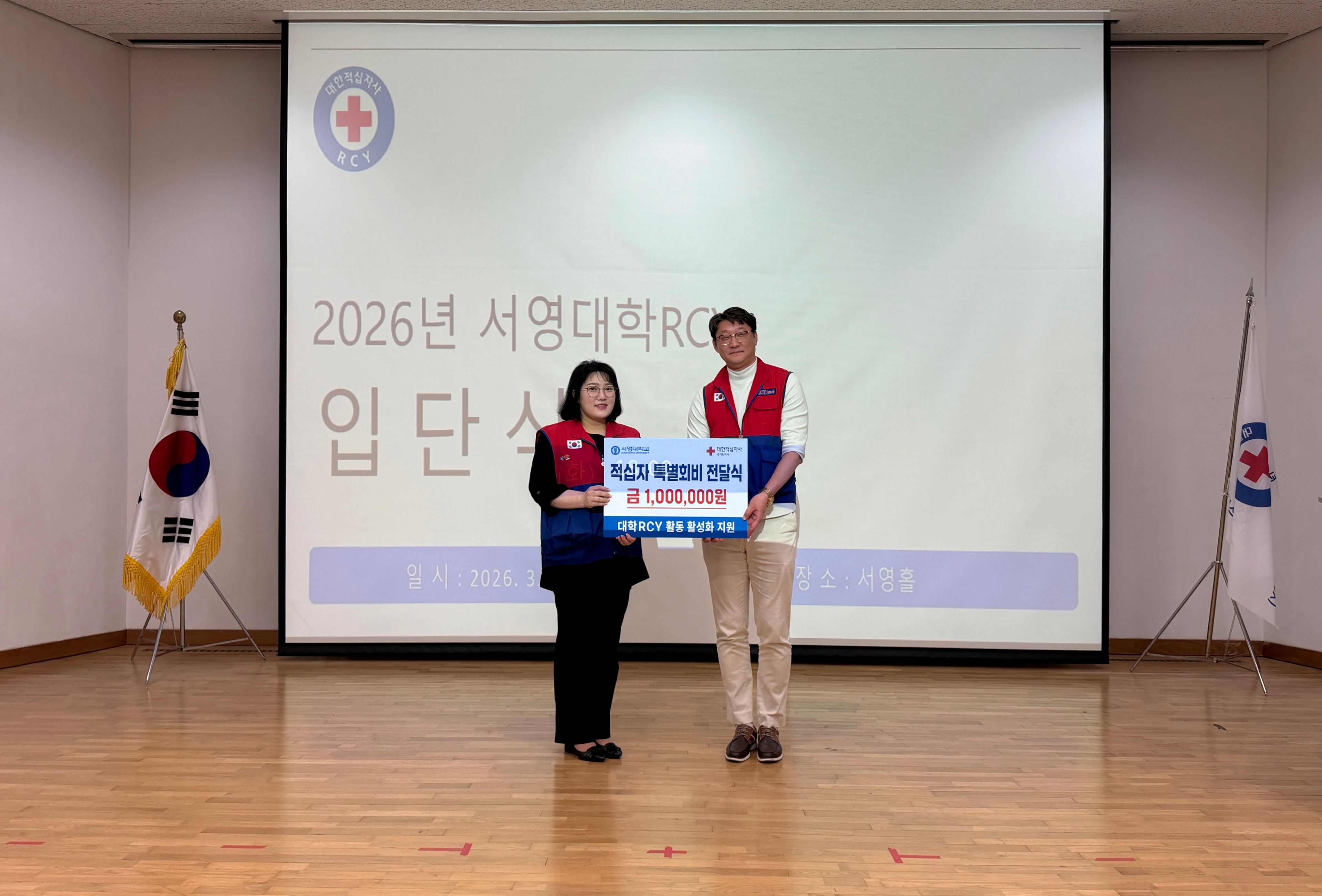O 이날 행사에서는 기본 교육이 함께 진행되어 회원들의 향후 활동 방향에 대한 이해를 높였으며, 서영대학교 RCY 활동 활성화를 위한 특별회비 전달식도 함께 이루어졌다. 구소연 지도교수는 특별회비 100만 원을 전달하며 서영대학교 RCY 활동 활성화를 위한 안정적인 활동 기반 마련과 프로그램 운영 지원에 뜻을 더했다. 서영대학교 RCY는 지역사회 나눔 활동과 다양한 봉사 프로그램에 지속적으로 참여해 왔으며, 이번 신규 회원 입단을 통해 조직 운영의 지속성과 활동 기반이 더욱 강화될 것으로 기대된다.